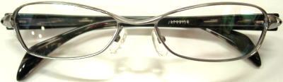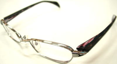 最大縁圧、約4mmの強度近視用リム(通常2mm程度)を使い、厚みのある2色のプラスチック生地を張り合わせ、更に削りだしによって甲丸感を出したモデルです。特徴的なヨロイの間を打ち抜いたことで、奥行きのあるデザインに仕上げ、掛けた時に、立体感のある表情を演出するように仕上がりました。 |