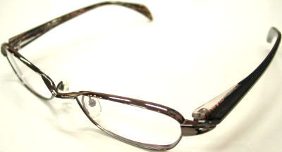 最大縁圧、約4mmの強度近視用リム(通常2mm程度)を使い、厚みのある2色のプラスチック生地を張り合わせ、更に削りだしによって甲丸感を出したモデルです。特徴的なヨロイの間を打ち抜いたことで、奥行きのあるデザインに仕上げ、掛けた時に、立体感のある表情を演出するように仕上がりました。 |