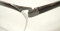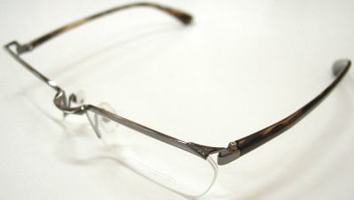 フロントからテンプルにかけて一段落とすことによって、奥行きを与えながらもきついイメージを和らげたカールトン風のデザインです。ヨロイ(サイド)の張り出しがほとんど無いのですっきりとした印象を与え、ビジネスシーンにピッタリのモデルです。質感のあるプラスチックテンプルがさりげない個性を演出します。 |